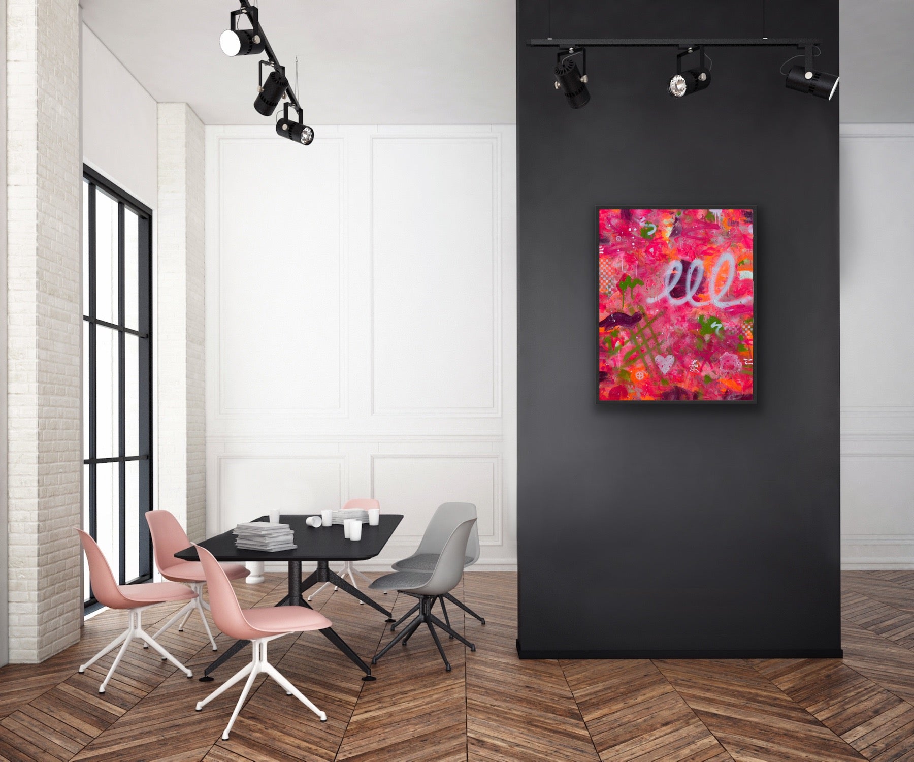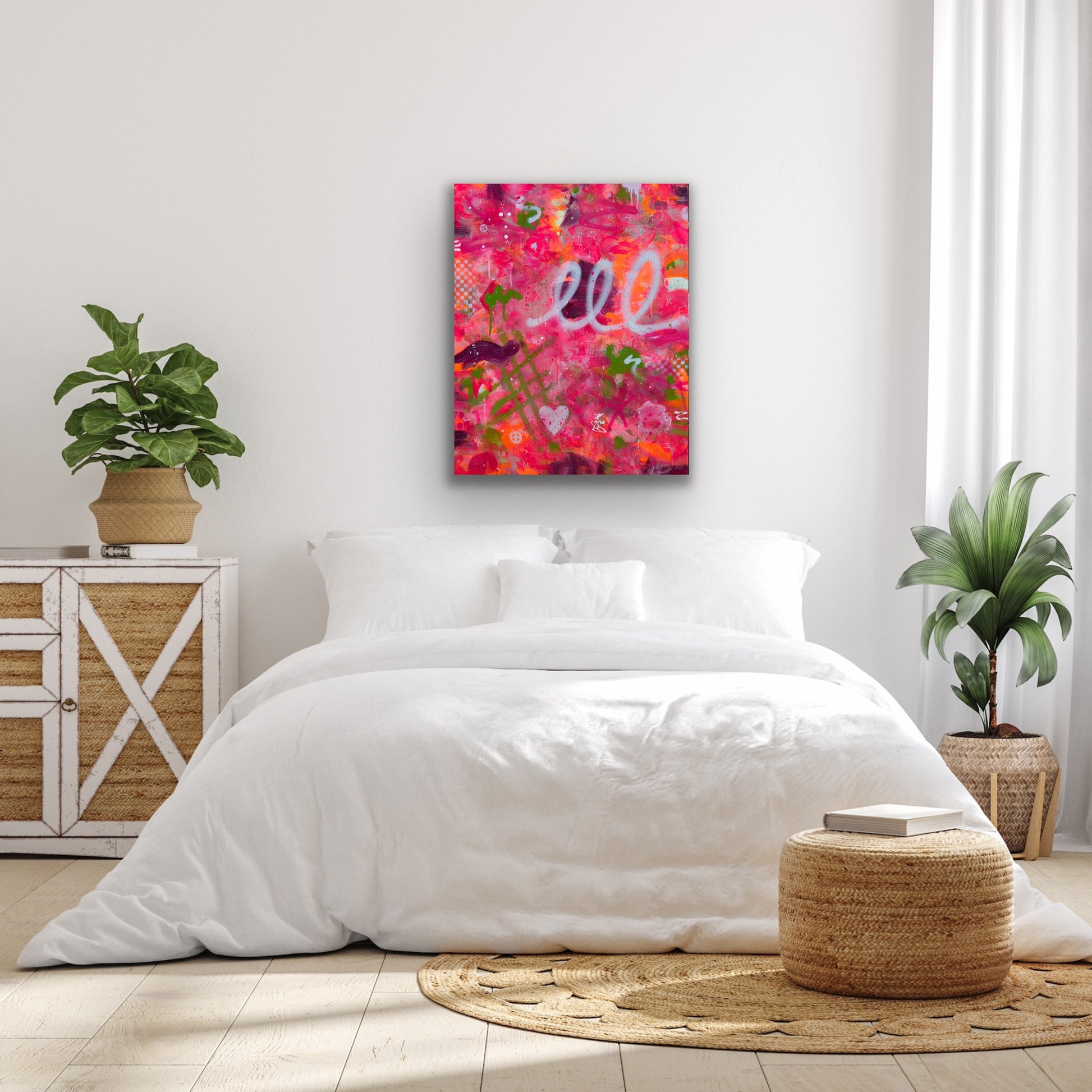 A bold pink abstract painting that delivers strong visual impact with vibrant colour and confident expression