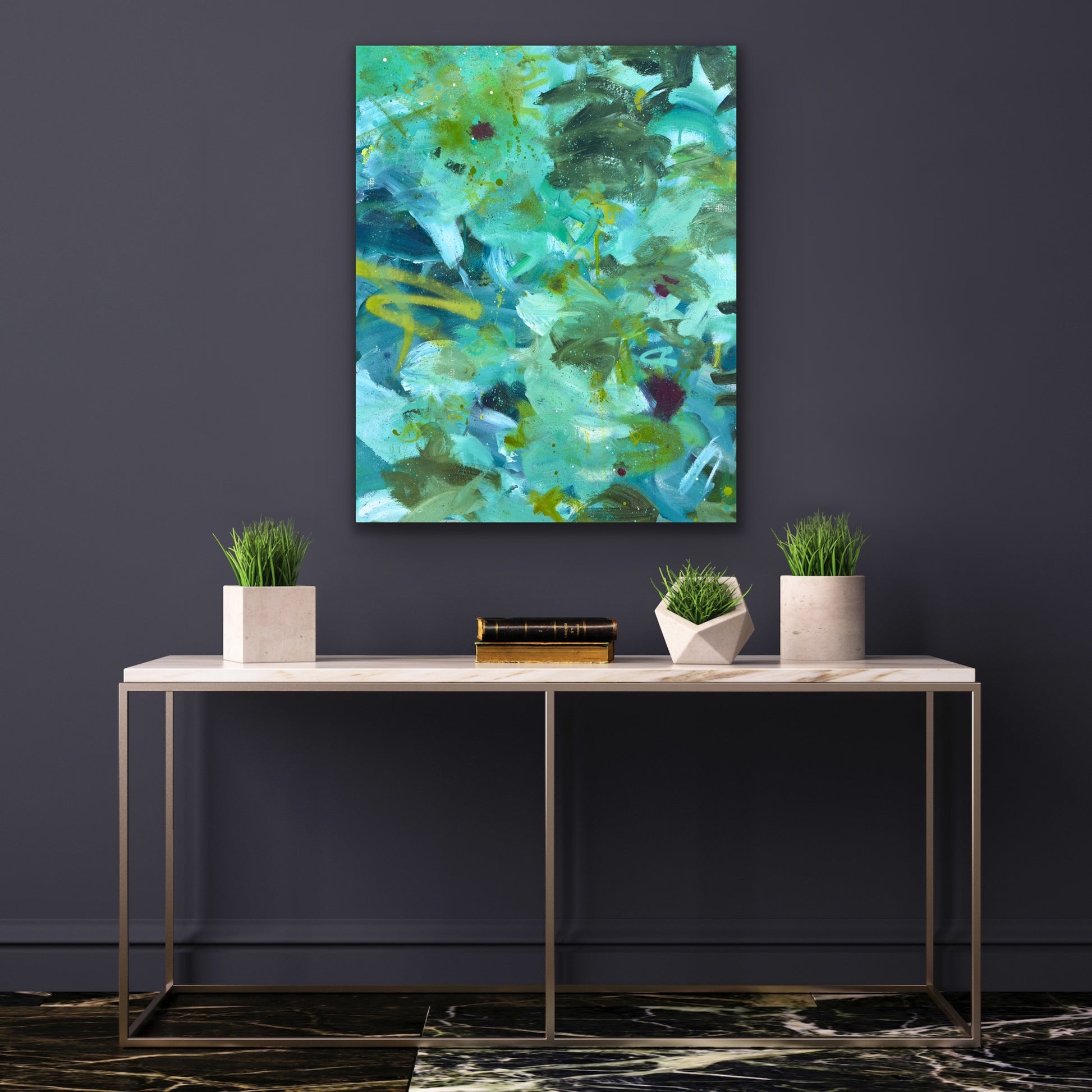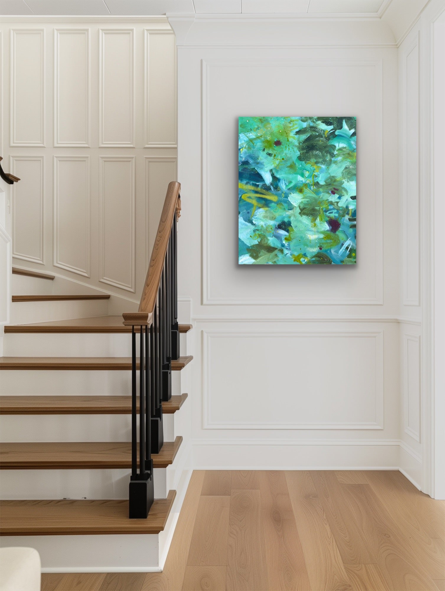 Immerse yourself in calming waves of blue and green — a serene abstract painting that captures the beauty of nature, movement, and emotion through fluid color and texture.